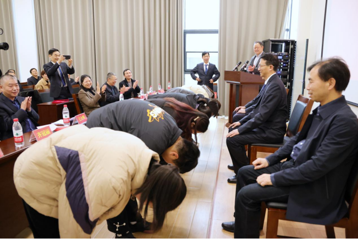 在全体与会人员的见证下,2022级临床医学专业60名本科生分别给导师行拜师礼,结下一生的师徒情谊。