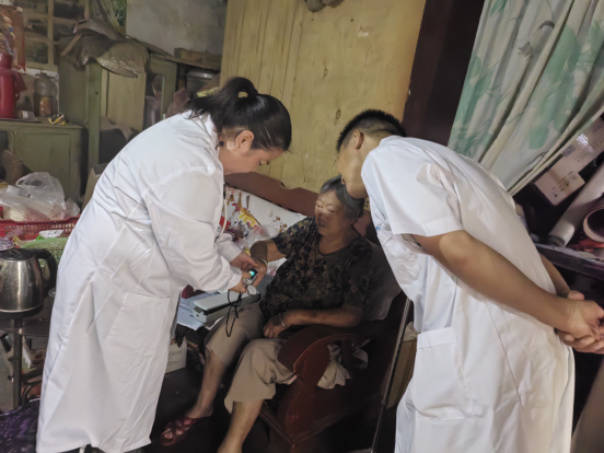 付景斐医生到出行不便的村民家中进行诊疗服务