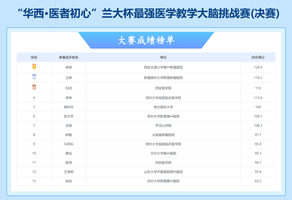 2025年10月23日,中国医学模拟教学联盟“华西-医者初心”兰大杯最强医学教学大脑挑战赛在兰州大学圆满落幕。bw西汉姆联吴茜老师从全国160余名医学教育精英中脱颖而出,荣获铜奖,充分展现了公司医学教师的专业素养与教学创新能力。