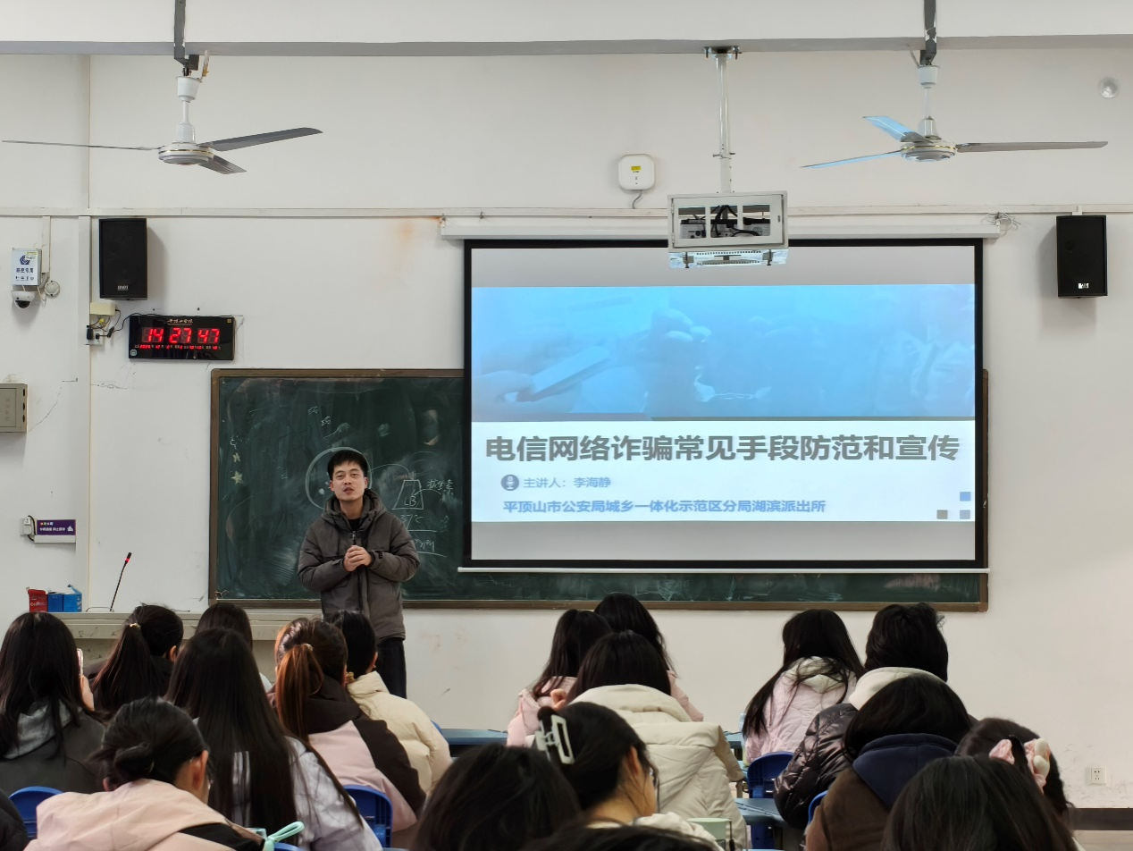 随后,李海静系统讲解了常见的诈骗类型,包括刷单返利、冒充“公检法”、冒充熟人、网络交友、买卖游戏账号等多种形式,并结合相关案例进行分析。她特别指出,各类电信诈骗虽手段各异,但其共同点均是不法分子千方百计骗取受害人钱财。在此基础上,她提醒同学们可通过手机拦截功能、微信安全设置、支付延迟到账等方式加强预警防范,牢记防范电信诈骗的十条准则,一旦遭遇诈骗应第一时间拨打110报警,并妥善保留相关证据。