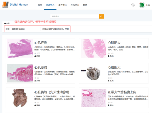 该虚拟仿真实验平台由数字化的“组织学”、“病理学切片”、“大体病理”、“寄生虫”、“微生物”等五个模块组成,包含切片标本2000多个及大量微生物实验。教学资源结合了全国众多高等bw西汉姆联校的资源,可基本满足公司形态学多门课程线上实验教学的需要。