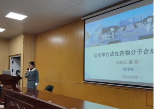 廉菲博士以《电化学在药物分子合成中的应用》为题为同学们讲解了电化学合成在药物分子合成中的应用研究,并通过具体的实例介绍了电化学合成在未来药物合成中的广阔应用前景。最后,廉博士结合自己的经历向同学们分享了很多学习和考研的经验,鼓励同学们多参加公司组织的竞赛,阅读书籍文献,掌握专业知识,才能更好地为以后工作和考研打下基础。