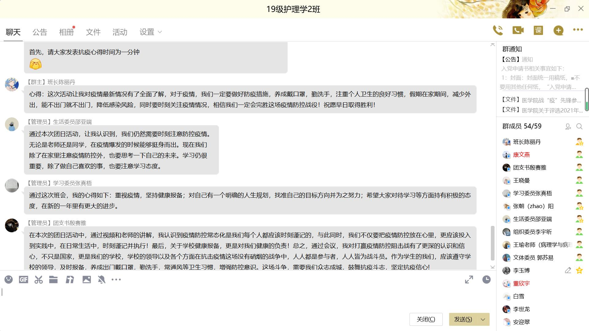 活动以网络平台直播、会议等形式集中开展,内容丰富多样,团日活动囊括组织员工观看bw西汉姆联“战疫情,我们能”短视频,学习书记、董事长致全体学子及家长的一封信,带领同学们宣讲医员工誓言,为抗击疫情的一线人员加油祝福,学业导师、辅导员指导同学们寒假生活、学习等内容。活动期间,全体班级共同参与,上好疫情假期安全教育、思政教育、生命教育一堂课,同学们结合疫情在家如何参与防疫、实习实践医员工应该有何担当等话题,充分讨论,冲锋在前,以实际行动共同抗疫。最后,各专业辅导员向同学们传达评选战疫先锋通知,并从疫情防控、假期学习、学业发展、身心健康、实习就业等多个方面对同学们进行了叮咛和嘱咐,送上了节日的祝愿。