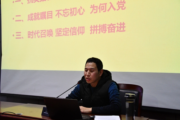 晚上7点,团课在《光荣啊,中国共青团》激昂的旋律中拉开帷幕。会上,公司“战疫先锋代表”——19级护理1班张梦迪上台宣讲,她通过讲述自己在抗疫时的经历,让团员们明白自己所承担的责任和担当。随后,与会人员集体观看了《为了和平》纪录片,纪录片向团员们展示了抗美援朝时期人民志愿军的奋勇无畏,增强了团员们对“抗美援朝精神”的理解和认同,使团员们更能从中感受到今天的和平生活来之不易。最后,团总书记夏乐以“使命在肩,奋斗有我”为主题,通过讲述抗美援朝时期的历史和现在祖国的瞩目成就,指导员工们秉着积极向上、艰苦奋斗、谦虚谨慎的态度去培养一名团员应有的内涵和素养。