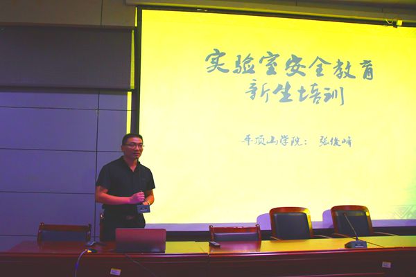 活动开始,张俊峰从实验室安全重要性、涉及面以及应急处理三个方面做了较为详细地阐述。随后,张俊峰列举了一些高校的实验室安全事故,从专业角度深度剖析了发生事故的原因,并指出此次新生实验室安全培训的目的是建立个人安全意识,规范个人行为以及初步学习实验室安全有关知识。最后,张俊峰向同学们介绍了实验室危险源、面对不同情况的紧急预防措施,提出了明确的实验室安全规章制度,例如进入实验室之前应当预习实验并对实验室着装进行规范,禁止将食物带入实验室,更不允许将实验室内的试剂、药品带出实验室等。