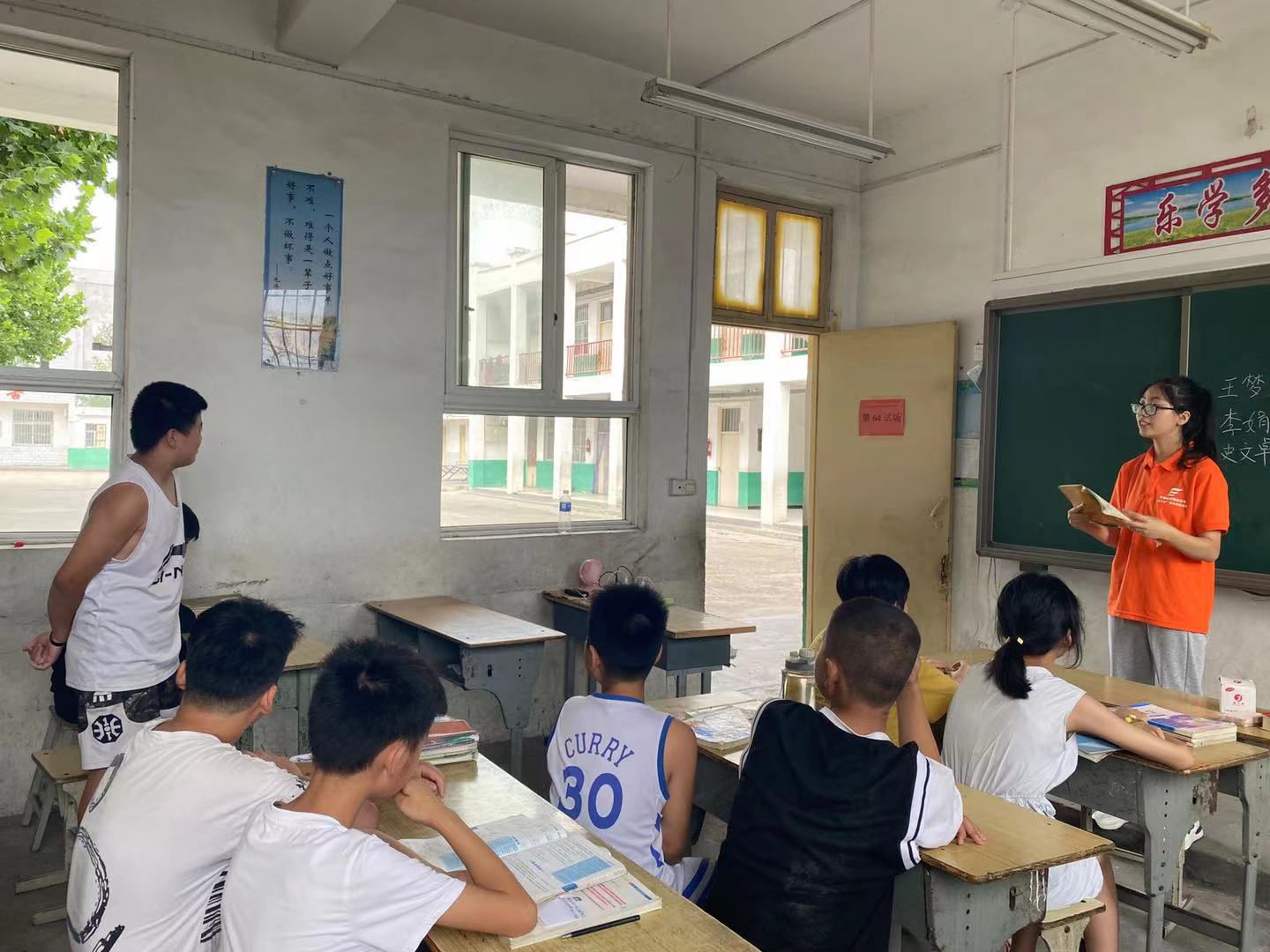 经过备课、教室整理和才艺准备等环节之后,7月14日上午,公司赴叶县夏李乡葛庄村的义务支教队伍迎来了正式开班。支教课堂上,孩子们的眼睛里充满好奇和求知欲,散发着渴望学到新知识的光芒。他们认真听讲,勤学好问。志愿者们认真仔细解答孩子们的问题,讲解题目的解法。志愿者何伟涛说:“看到孩子们那一双双渴望知识的眼神,我们一定会尽自己所能,利用所学,带领孩子们一起遨游在知识的海洋”。