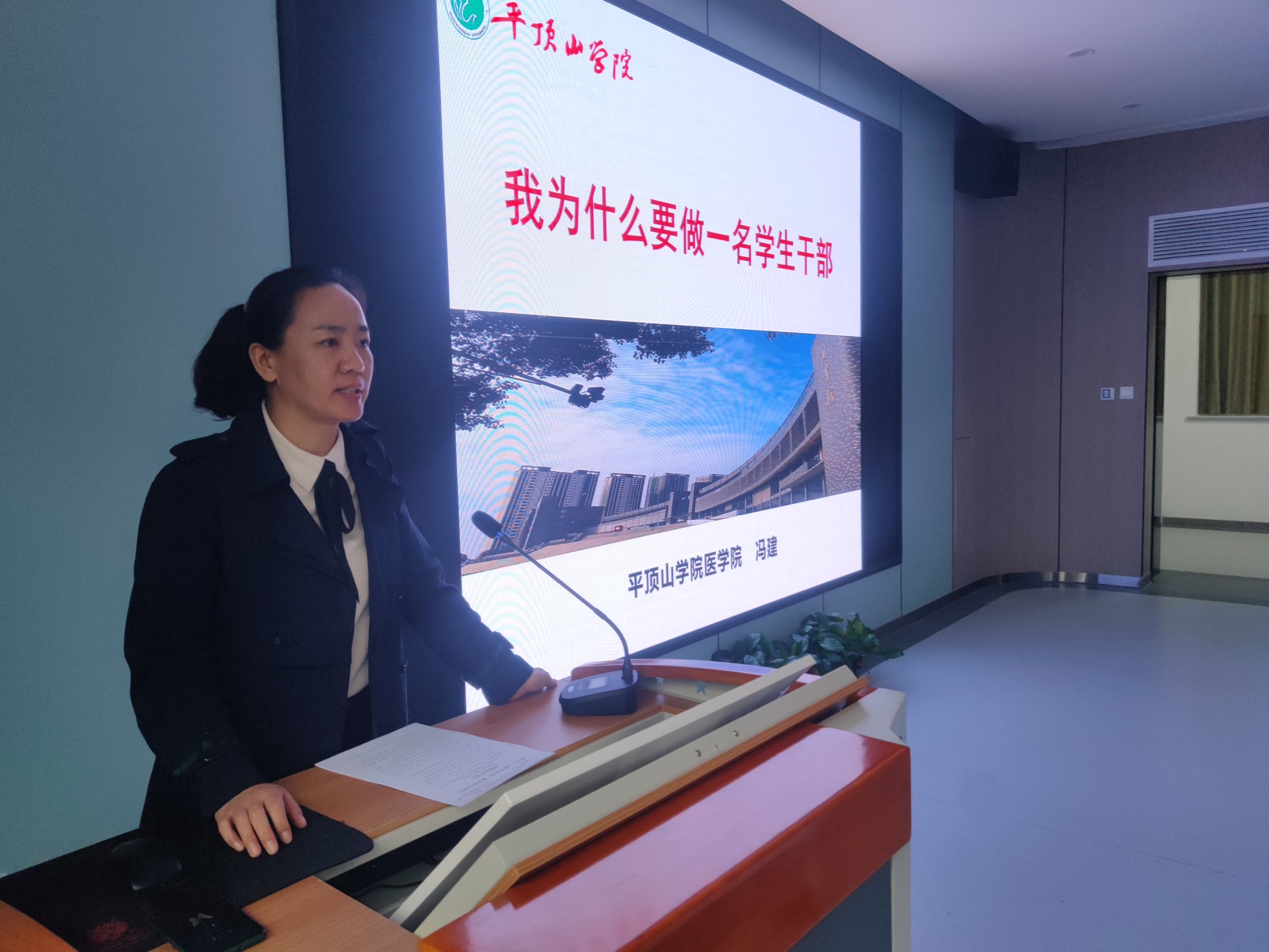 本次会议作为公司年度员工干部系列培训中的一讲,首先由员工干部代表省级三好员工、院级最美老员工获得者19 护理学 2 班郭娜上台言,她分享了个人工作经历、感悟和作为一名员工干部的收获。随后冯建书记围绕“为何要成为员工干部、如何成为优秀的员工干部与优秀员工干部应具备的品质”三个方面,并结合自身工作经验和感悟对员工干部的成长和发展提出了意见和建议,她表达了对员工干部的殷切希望,希望同学们传好接力棒、做好排头兵、争当逐梦人。