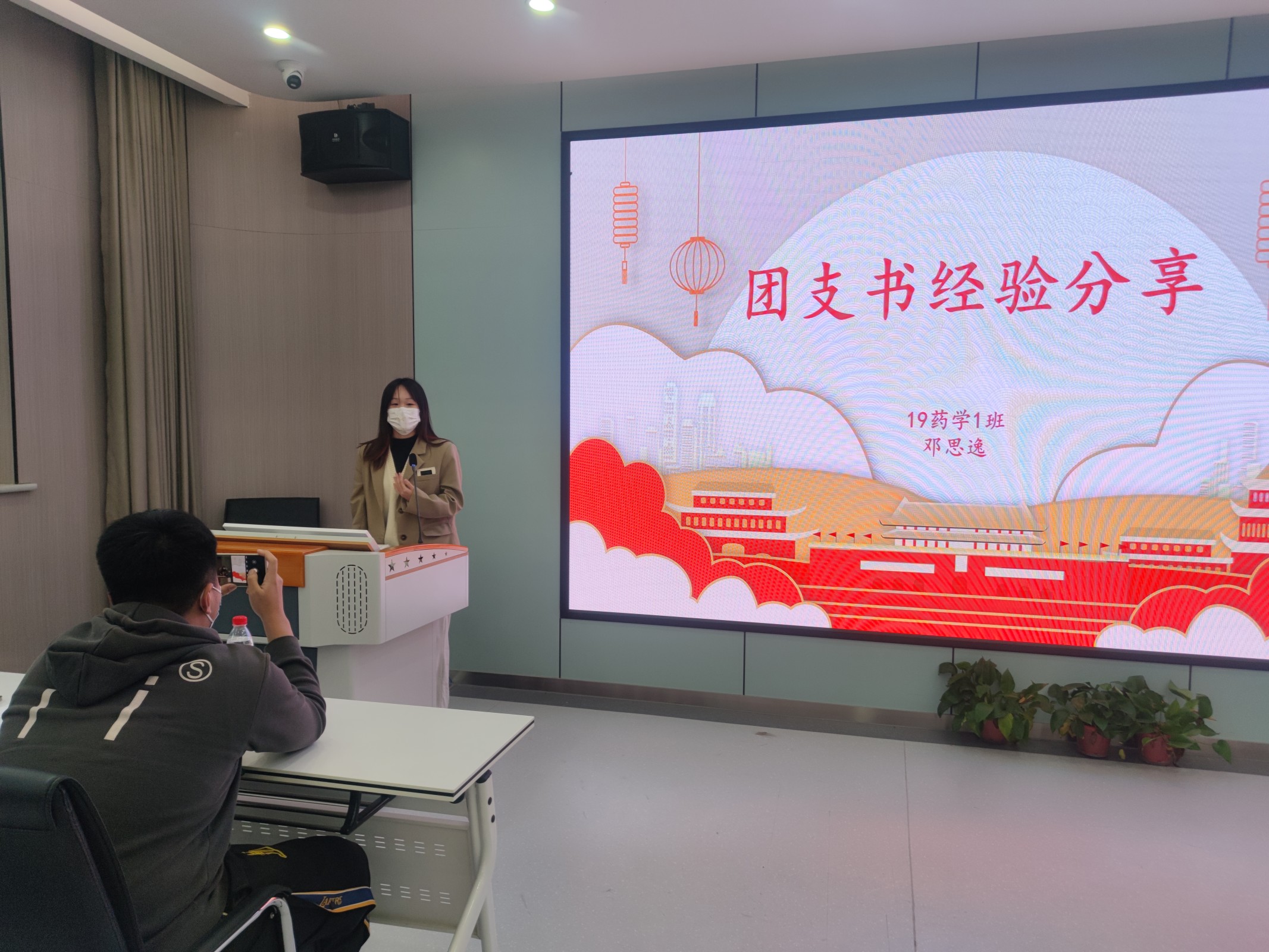 会后,还一并召开了在校班级班长团支书例经验分享交流会。会上魅力团支书代表19 药学 1 班邓思逸上台发言并分享了团支部建设的经验和团支书工作的感悟。