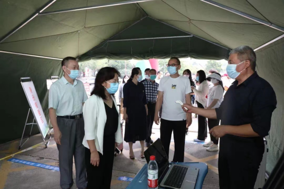 15日上午,董事长苏晓红一行在医公司党政负责人陪同下来到迎新一线现场检查,详细了解迎新各项工作进展情况,查看新生入校流程,检查疫情防控措施执行情况,并与新生及家长们亲切交谈。