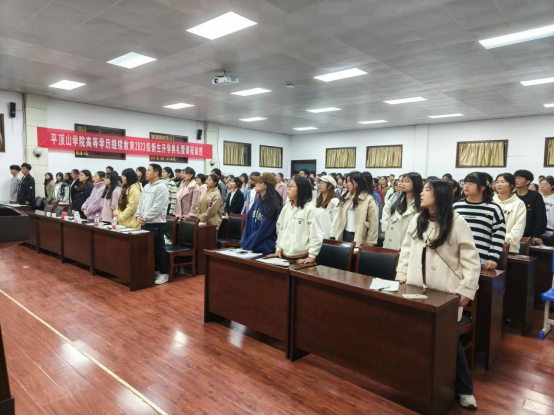 仪式伊始,主持人宣读培训纪律,全体起立共同奏唱共青团团歌。随后,夏乐老师进行了开班讲话并提出殷切期望。他指出,希望同学们作为新时期团员青年,要有责任感、使命感和紧迫感,不忘初心、坚定信仰,争做优秀共青团员。最后,夏乐老师以《认识共青团》为题进行了本期培训的第一讲。他分别从共青团基本概况、组织象征与标志等六个方面讲解了共青团的基本知识,并结合自己“三下乡”活动的实践经历,讲解积极参与社会实践活动的意义,鼓励各位团员积极参与到志愿服务、社会实践中去。