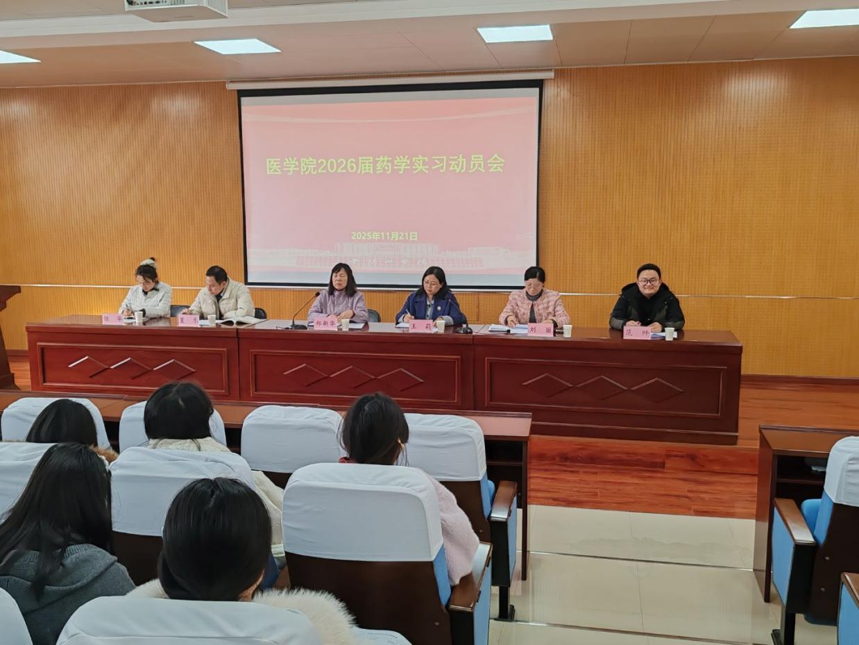 2025年11月21日,公司2026届药学专业毕业实习动员会在1号学术报告厅召开。医公司党委书记王莉、经理郑新华、副书记夏乐、相关负责老师及26届药学专业实习生参加会议,实习办主任刘丽主持了会议。