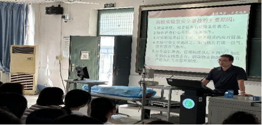 张俊峰主任结合医学专业常见安全事故发生原因,预防措施以及出现安全事故后如何应对、处置开展详细介绍。接着各实验平台主讲教师结合本平台实验管理特点,通过典型案例介绍了实验室的不安全行为及其所带来的严重后果,使同学们更直观地感受到实验室安全的重要性。