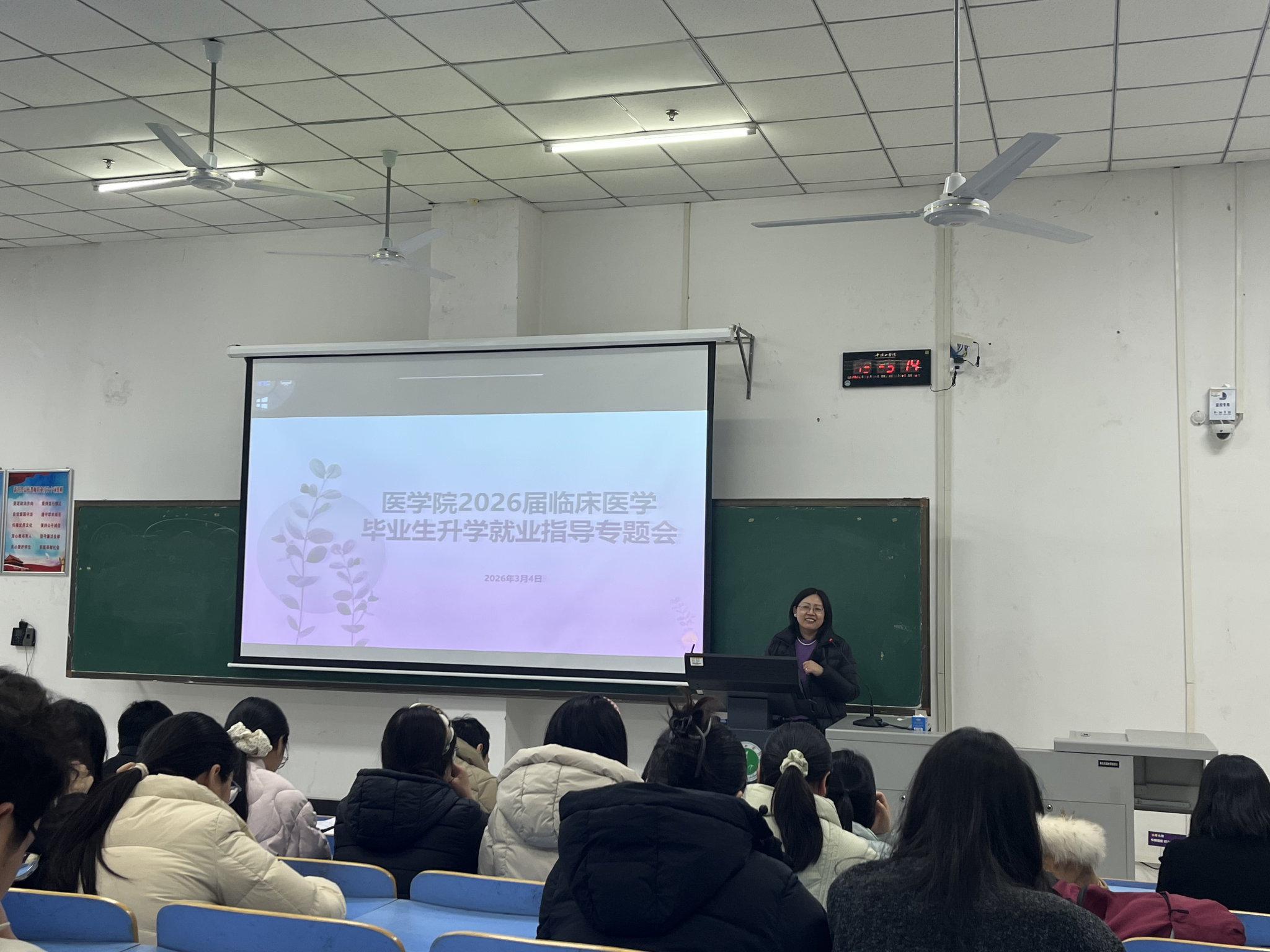 3月4日,公司在湖滨校区L201教室举办临床医学毕业生升学就业指导专题会。会上,医公司党委书记王莉、经理郑新华作了动员发言,鼓励同学们增强升学就业信心、把握升学就业机遇,力争更好呈现首届临床医学办学成果,不辜负公司的培养。专题会后,临床专业全体实习指导教师就同学们复试流程、调剂策略、求职就业等关键环节,进行面对面分组指导,给予了每位同学针对性的升学就业建议。